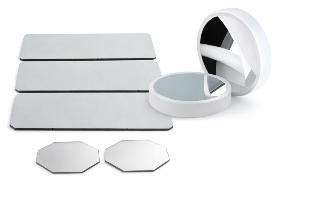 Chaque miroir est réalisé à partir de substrats optiques polis à haute précision, dont la planéité et la rugosité de surface garantissent une réflexion homogène et sans distorsion.