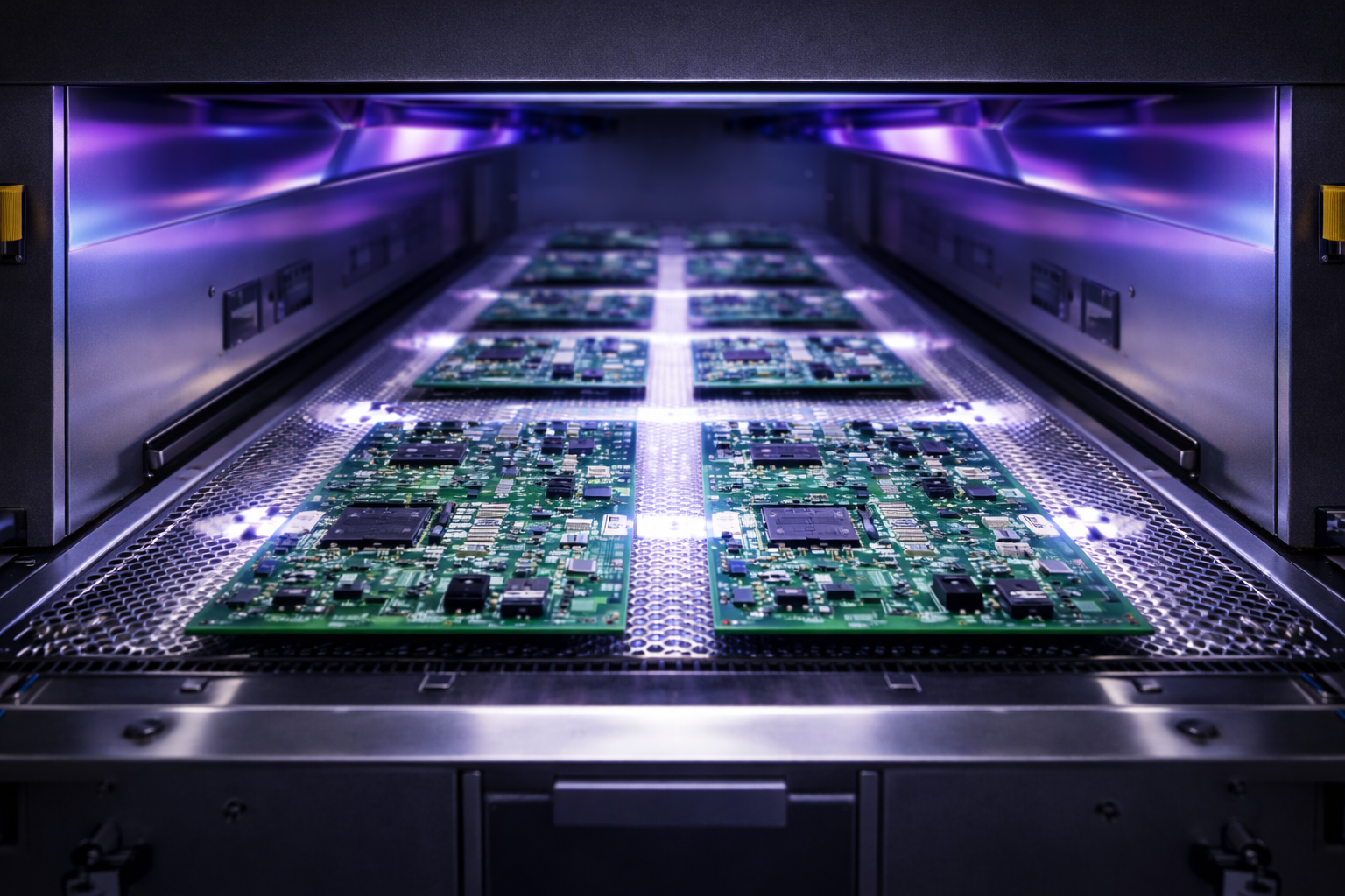Dans le domaine de l’industrie, nos réflecteurs équipent des fours de séchage de résines et de vernis sur cartes électroniques, où la résistance aux hautes températures et la stabilité du rendement lumineux sont essentielles.